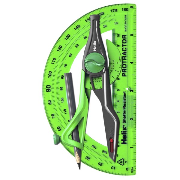 Helix - Plastic Locking Compass and Protractor - 2 Piece Set - Geometry, Drafting & Drawing
