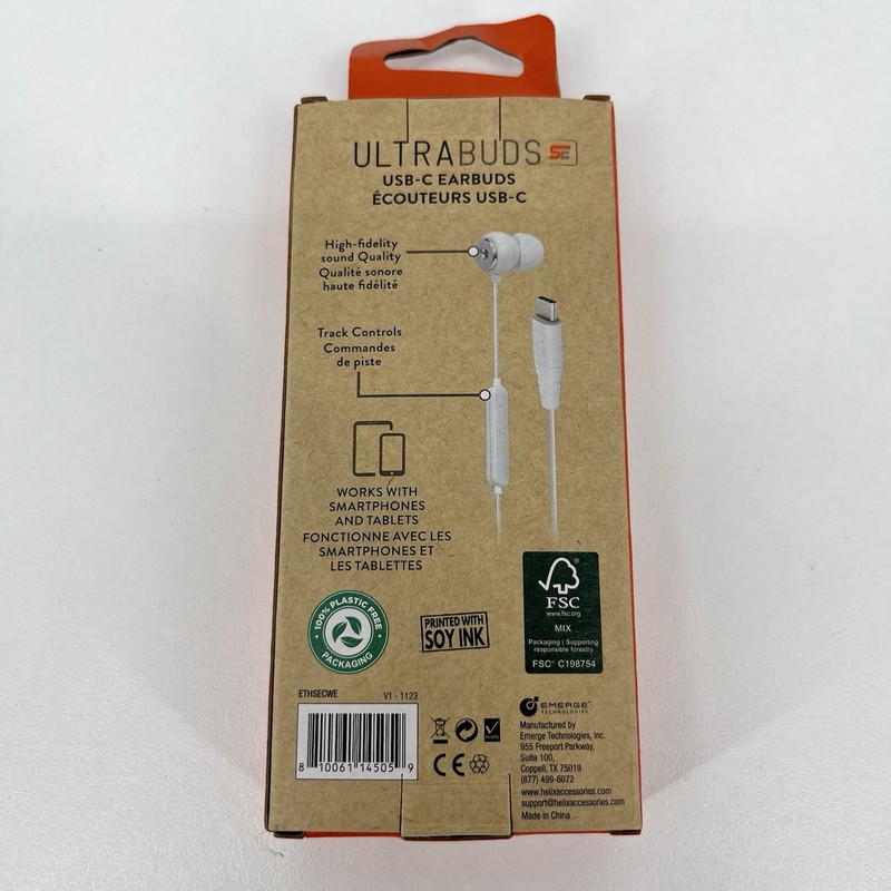 Helix Ultrabuds USB-C Earbuds Connector White Wired Headphones NEW