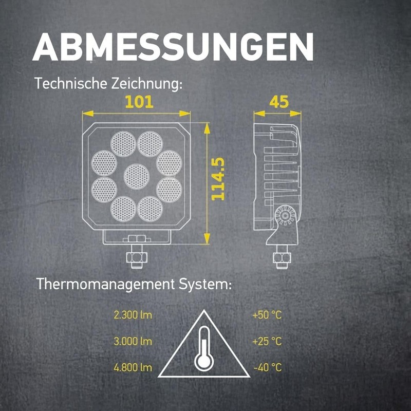 • The Hella Valuefit work light series is also equipped with a thermal sensor that adapts to the ambient temperature.