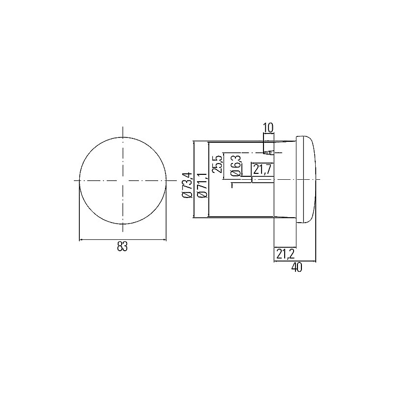 - Diameter: 95 mm, length: 84 mm, lamp type: P21W, with bulb