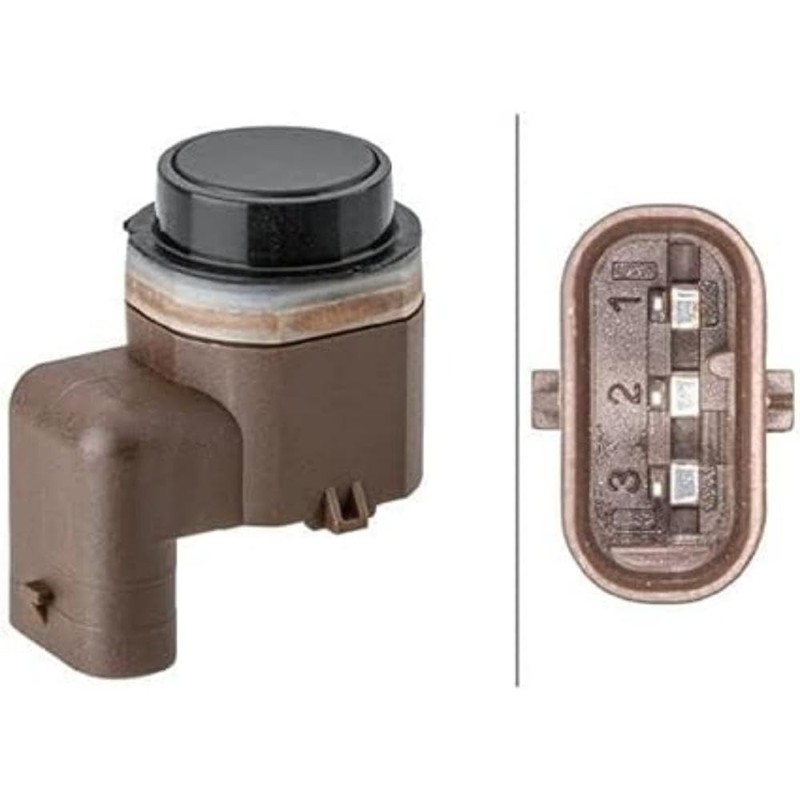 HELLA 6PX 358 141-821 Sensor, Parking Aid - Angled - 3-Pin - Plucked - Can be Painted Over - with Mounting Ring