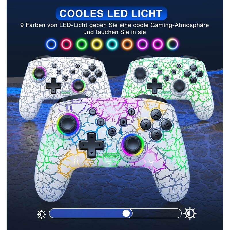 • One button wake up function & cool LED light switch controller: press the "sync" button for the first connection. Then next time, just press the Switch Controller's "Home" button to wake up and reconnect your console. 9 colours light, you can change the colour after different games to immerse yourself deep into the game.