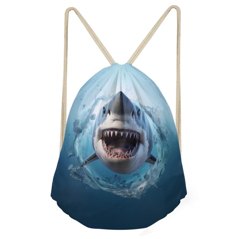 HELLHERO Shark Drawstring Backpack Cinch Sackpack String Bag PE Gym Bags Folding Storage Sack Pack Backpack Storage Pouch for Travel Holiday Swimming Cycling