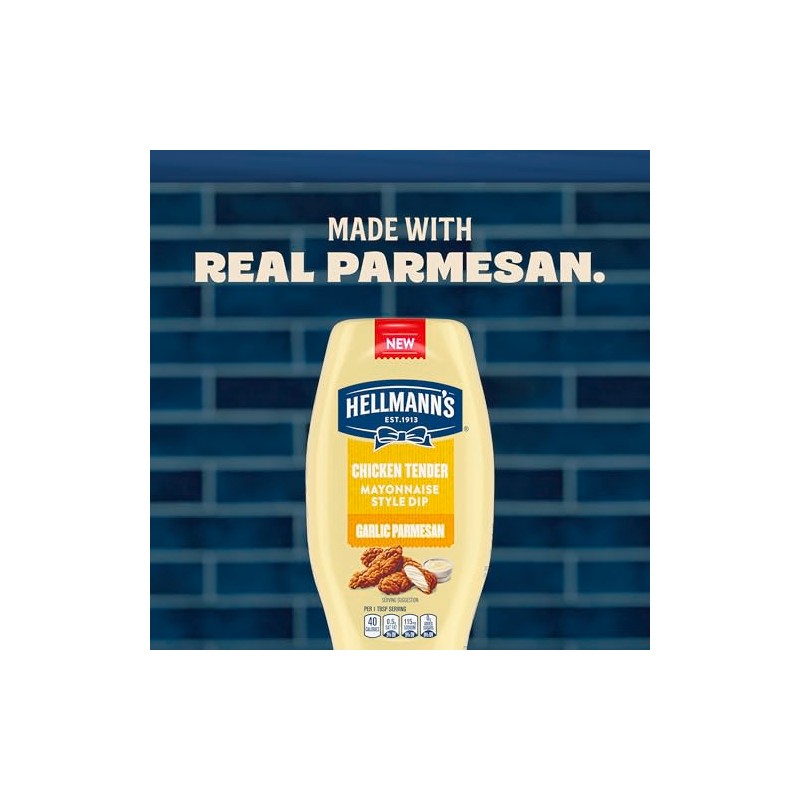 - Hellmanns Garlic Parmesan Chicken Tender Mayonnaise Style Dip is made with real parmesan and contains no artificial flavors