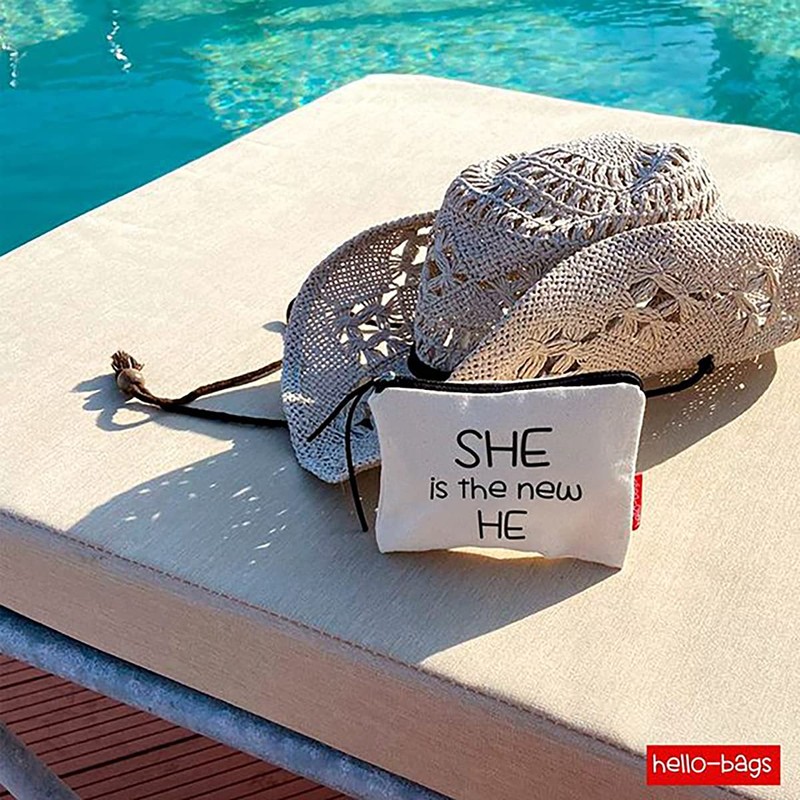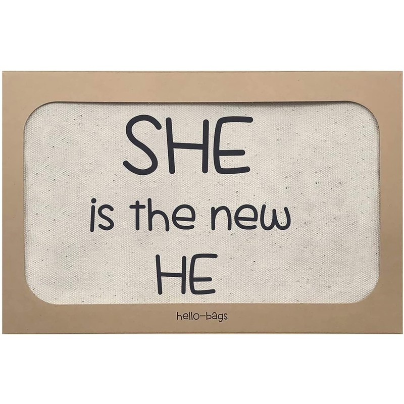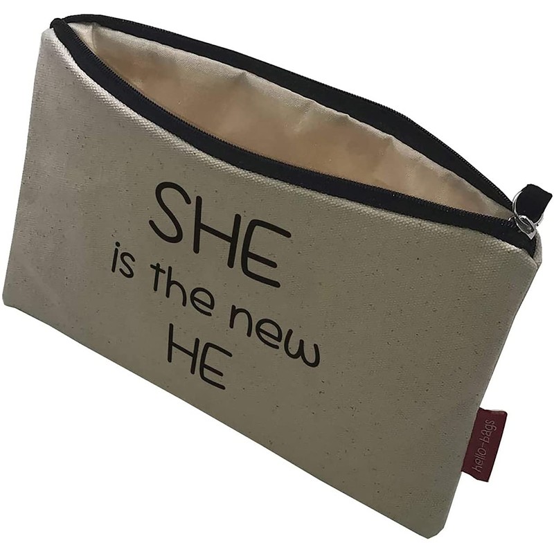 Hello-Bags. Makeup Bag / Wristlet Handbag Exterior 100% Cotton Zipper and Lining Packed in a Kraft Gift Envelope "SHEISTHE" Colour Ecru/Black 23 x 15.5 cm, Ecru, 23 centimeters, Contemporary