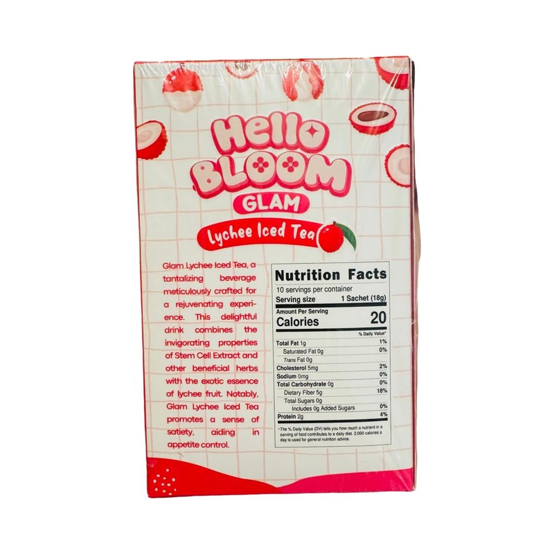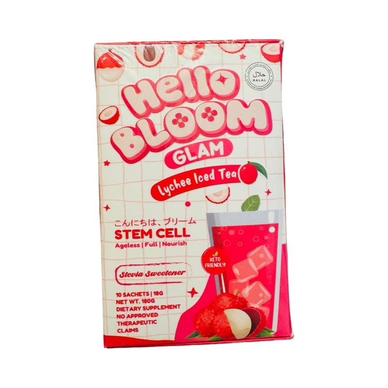 Hello Bloom Glam Stem Cell Iced Tea Powder Drinks (10 Sachets, Lychee Iced Tea)
