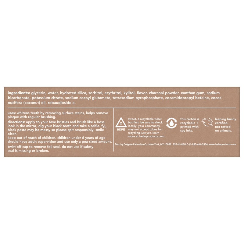 • hello activated charcoal fluoride free toothpaste whitens teeth by removing surface stains and removes plaque with regular brushing.