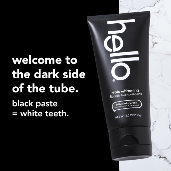 hello hello Activated Charcoal Epic Whitening Fluoride Free Toothpaste, Fresh...