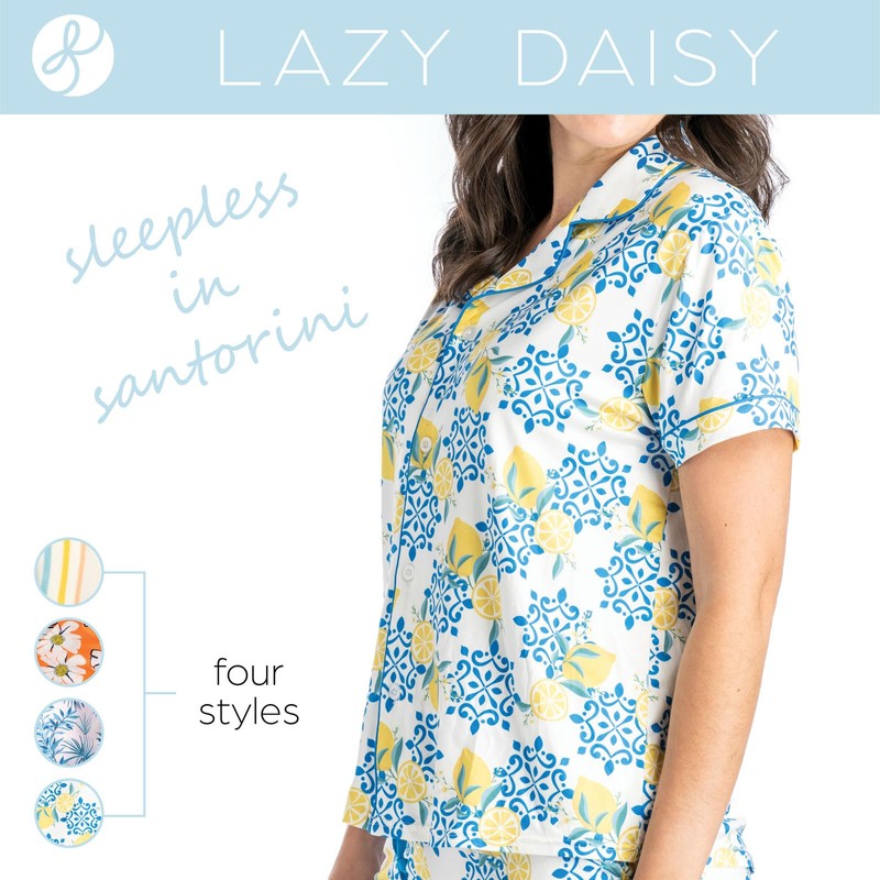 Hello Mello Lounge Short Sleeve Soft Pajama Top for Women - Sleepless in Santorini, Medium/Large