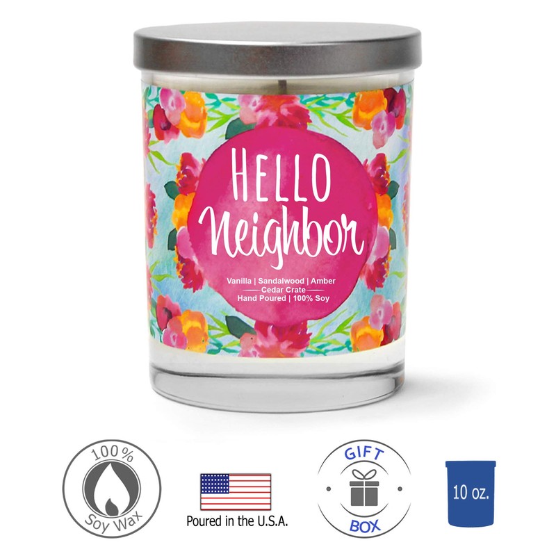 Hello Neighbor - New Home Candles Gifts, Housewarming Gifts for New Home, Welcome Home Gift Ideas, New Neighbor Present, Friendship Presents, Christmas, Hostess Gift, Poured in USA, 100% Soy Wax