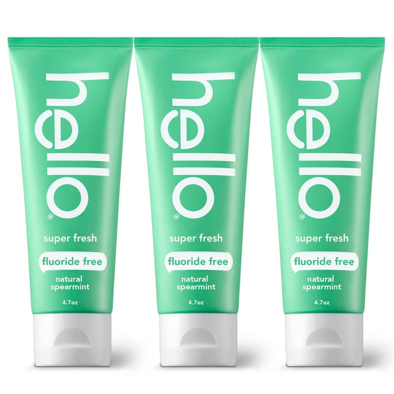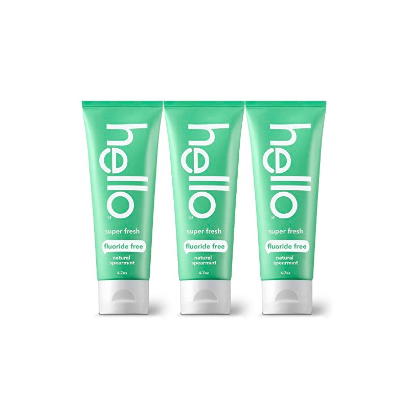 - Includes three 4.7 oz. tubes of Hello Super Fresh Whitening Toothpaste, Fluoride Free Natural Spearmint Toothpaste