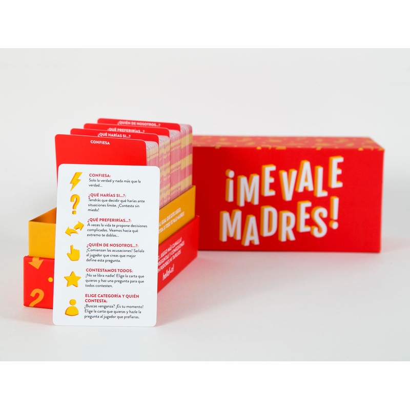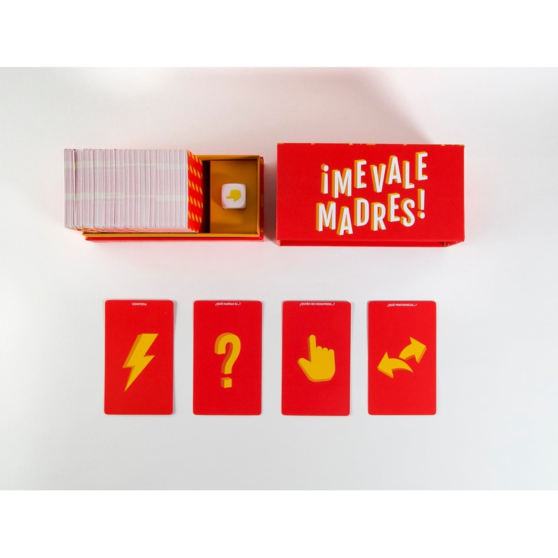 • ME VALE MADRES un juego 200 tarjetas con preguntas y confesiones sin pudores ni tapujos, 1 dado y 1 tarjeta con instrucciones.