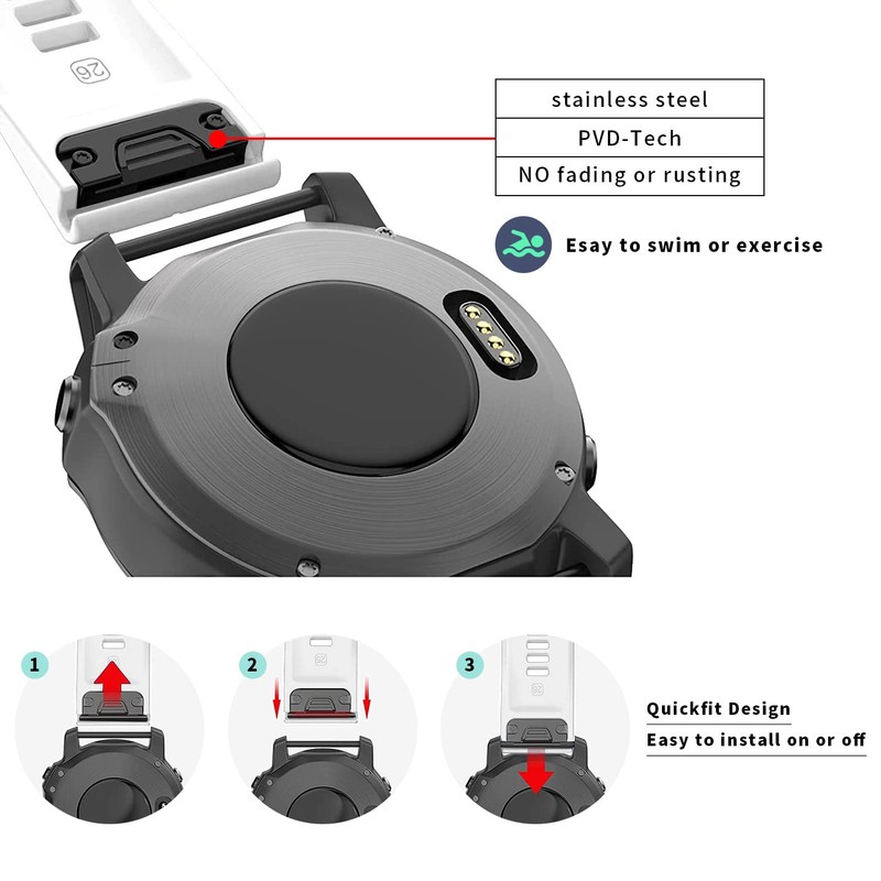 Compatible with Garmin Fenix 5X Watch Band, 26mm Soft Silicone Quick Release Replacement Watch Strap For Garmin Fenix 5X/ Fenix 5X Plus/Fenix 6X/Fenix 6X Pro/Fenix 7X/Fenix 7X Pro/Fenix 8(51mm)/Tactix/Descent/D2/Quatix/Enduro