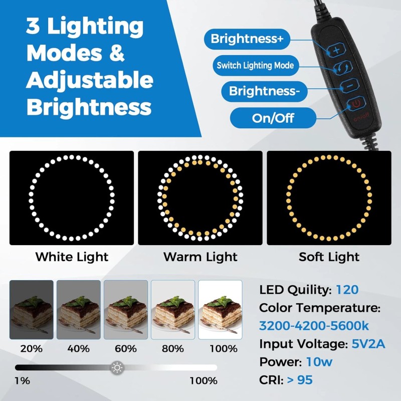 - Adjustable Brightness and High Color Rendering Index: 12"x12" Photo light box Built in 120 high-quality LED beads, with a color temperature of 3200-4200-5600K, allowing users to freely choose between cold or warm light. The brightness level can be easily adjusted from 1-10, and the color rendering index (CRI) of the lightbox is up to 95+, product light box providing soft, sufficient, and uniform photography lighting for shooting at any angle, presenting the true color of objects.