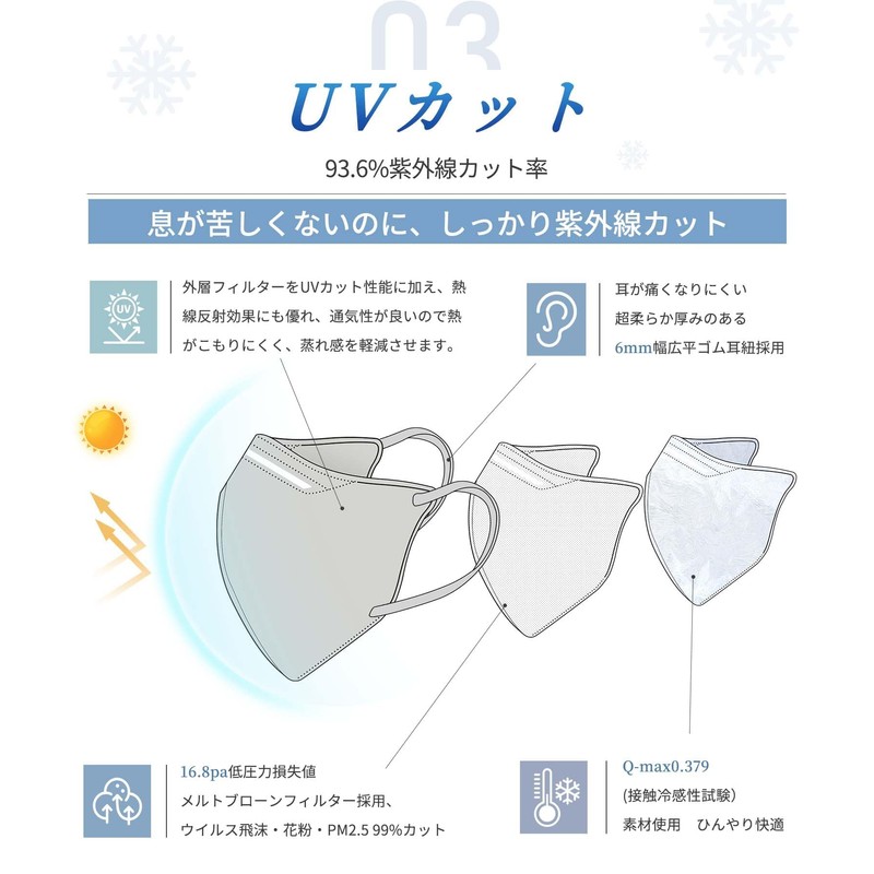 - 【冷感の素材を使用 】 接触冷感マスクに触れると肌に優しく、持ち心地がいいです。マスク本体にはベビー用のSSS級柔らかい素材を使用し、肌触りがよく、細菌の繁殖を抑え、毛羽立ちが少ないため、長時間着用しても肌荒れの心配がありません。