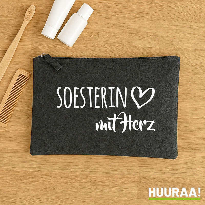 Hellweg Druckerei Kulturbeutel Soesterin mit Herz Geschenk 1 Liter Charcoal Filz Soesterin Geschenkidee