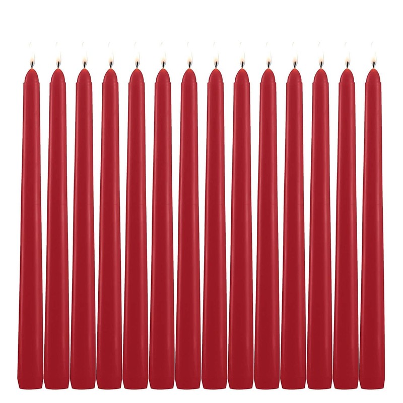 HELLY 14 Pack Tall Red Taper Candles - 10 Inch Red Dripless, Unscented Dinner Candle - Paraffin Wax with Cotton Wicks - 8 Hour Burn Time.