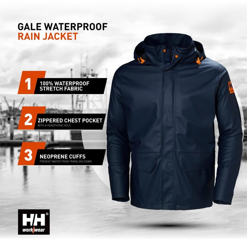 Helly-Hansen Workwear Gale Mens Rain Jackets Waterproof With Hood Made from Heavy-Duty Polyurethane on Polyester Knit, 590 Navy - X-Small