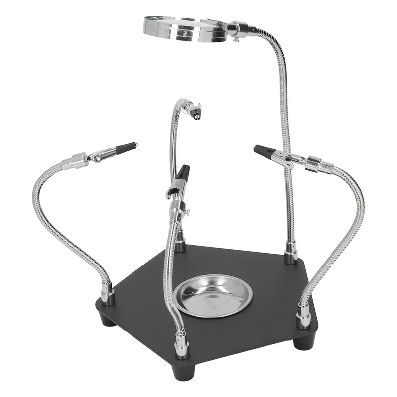 Helping Hands Soldering Station, Third Hand with 3X Magnifier, 4 Flexible Arms Metal Base PCB Circuit Board Holder for Soldering Tools Repair Crafts Jewelry Helping Station