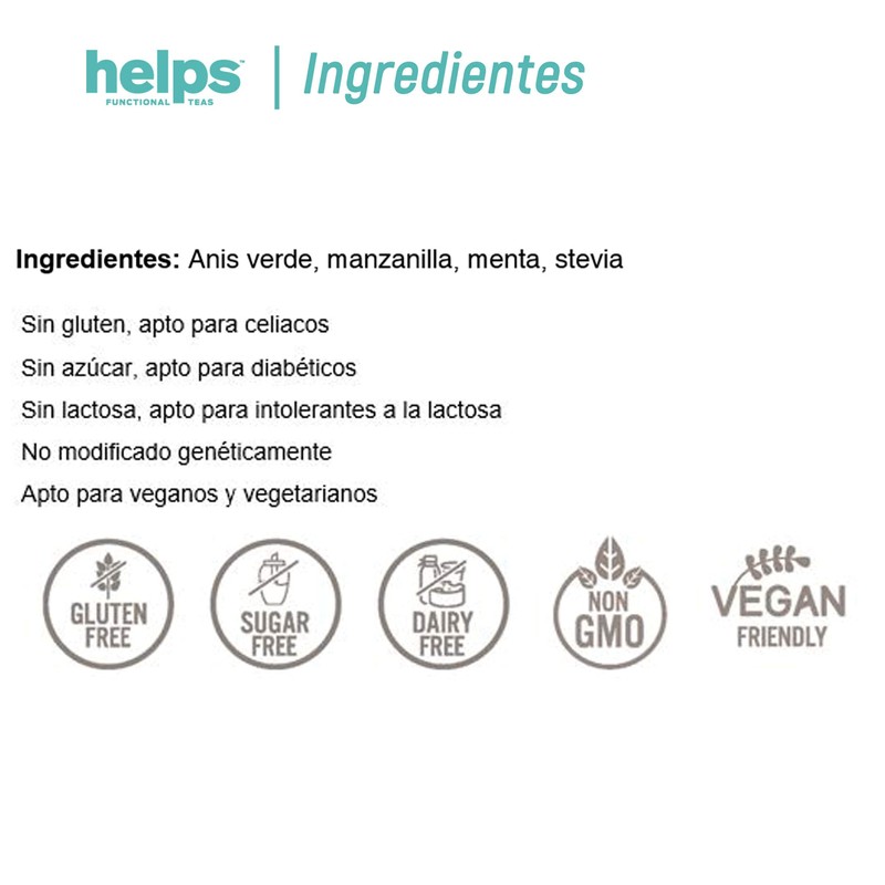HELPS INFUSIONS - Digestive Infusion with Green Anise, Chamomile, Mint and Natural Stevia. Helps with Digestion. Box of 16 Bags
