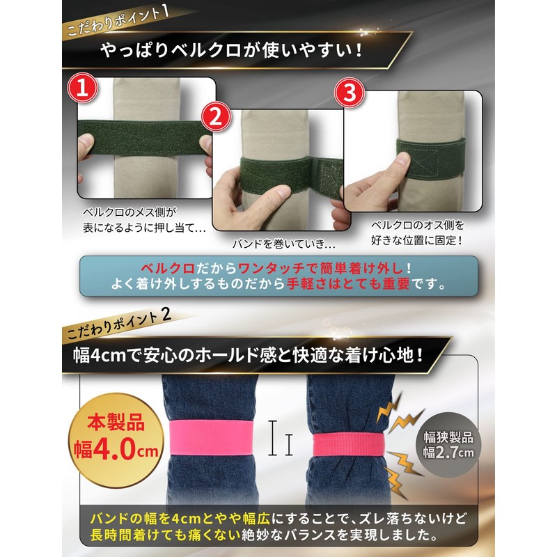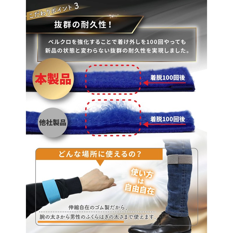 - Outstanding durability. ) Reinforced Velcro portion. With our own durability test, you can wear it 100 times and put it on and take it off as new, so you can rest assured that it can be used as a sock band during intense exercise