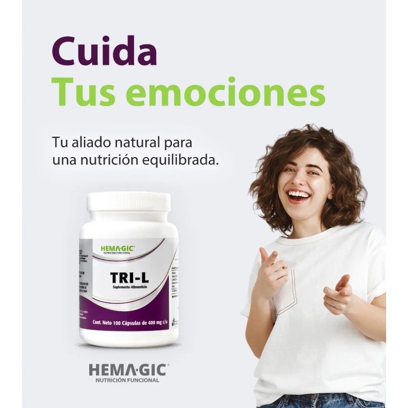 Hemagic Tri-p Triptófano L-lisina Y Vitamina B3 100 Caps Sin Sabor