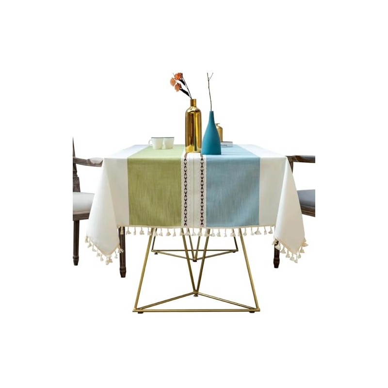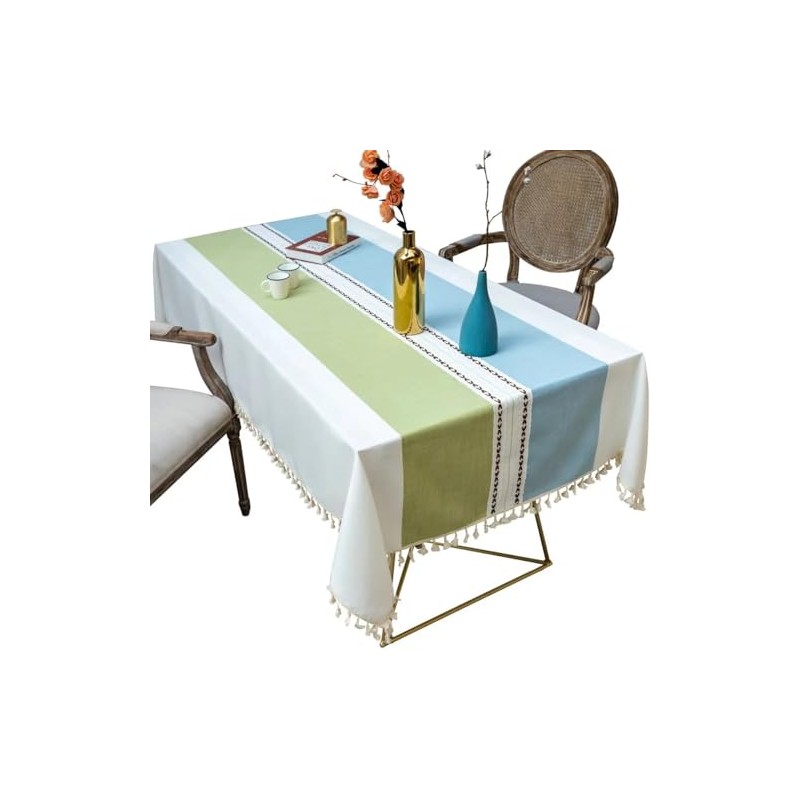 Hemasa Cotton Linen 140x180 Tablecloth Rectangular with Tassel Fringe for Kitchen Dining Table Cover Decoration (Model2)