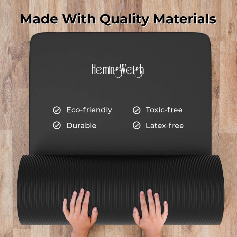 HemingWeigh 1 Inch Extra Thick Non Slip Yoga Mat - Exercise Mats for Home Workouts, Black (70"L x 23"W)
