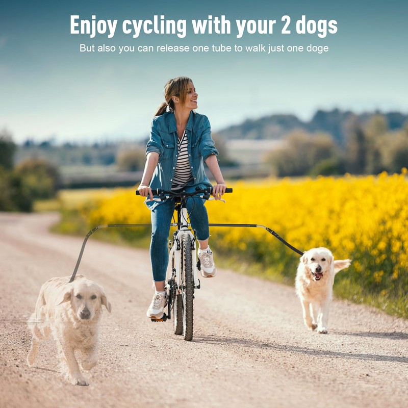 - Dual Dog Leash,Double the Fun: Our bicycle dog leash is designed for walking 2 dogs simultaneously, making it perfect for multi-dog families and active pet parents who love cycling with their furry companions