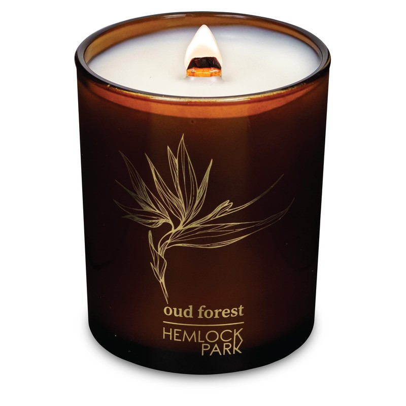Hemlock Park Wood Wick Candle Handcrafted with Natural Coconut Wax and Essential Oils (Amber & Gold 7.2 oz, Oud Forest)