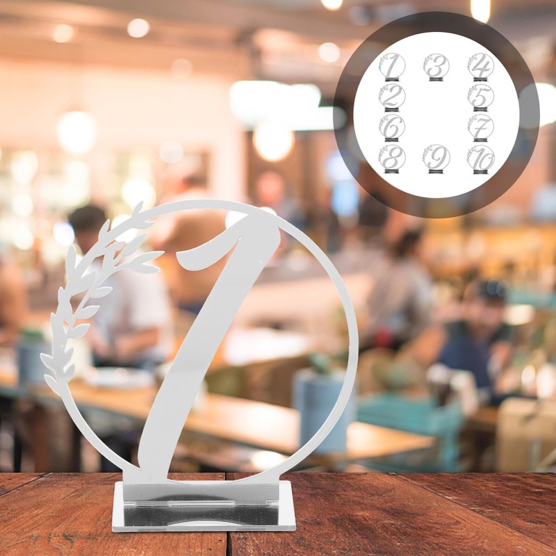 HEMOTON 10pcs Wedding Table Numbers Acrylic 1-10 Table Signs Clear Table Number Display Stand for Wedding Reception Event Party Restaurant Decor Silver