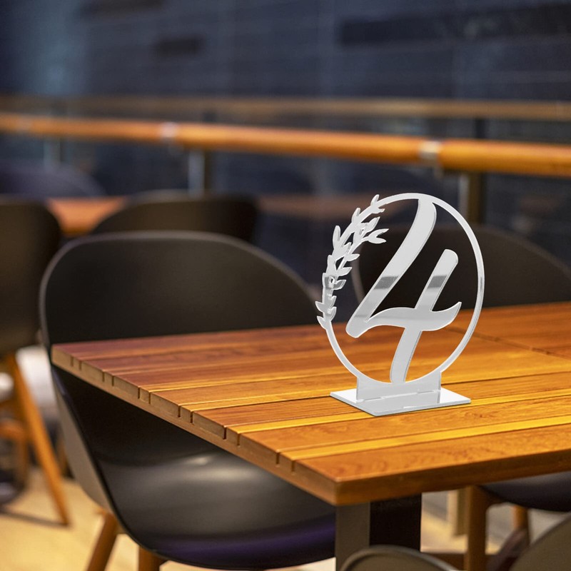 - Hotels Parties Number - These acrylic wedding table numbers are made of quality acrylic material with silver font design, each table number and the base are precisely cut with delicate sense of sophistication and festive.