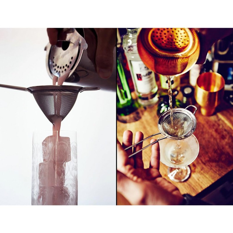 Take your bartending game to the next level with this tough and rust-resistant stainless steel strainer. The lon g handle design keeps your hands dry and out of your drinks while the fine mesh double straining ensures a soft, smooth finish. This strainer is ideal for those who love to mix thick drinks with pulp like lime seeds or those who prefer to first sift crushed ice before using it in their drinks.