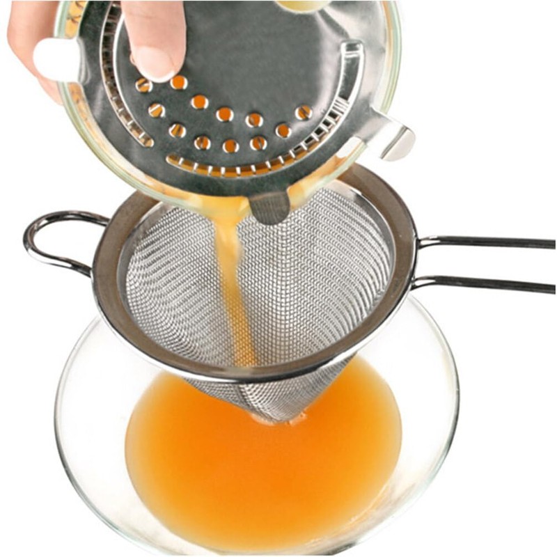 - The stainless steel food strainer with a fine hole design is an essential tool for your kitchen. Crafted from premium quality stainless steel, it is highly durable and never rusts.