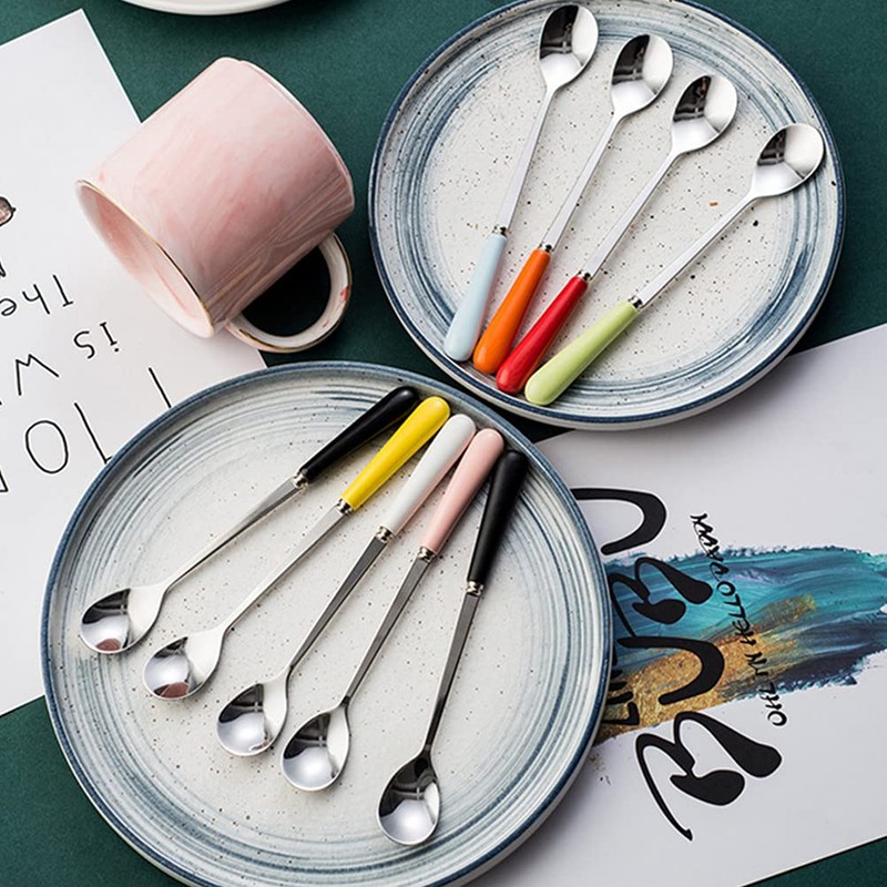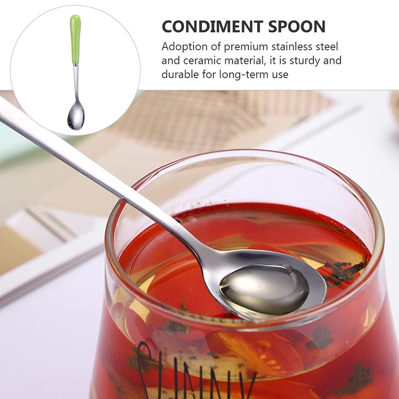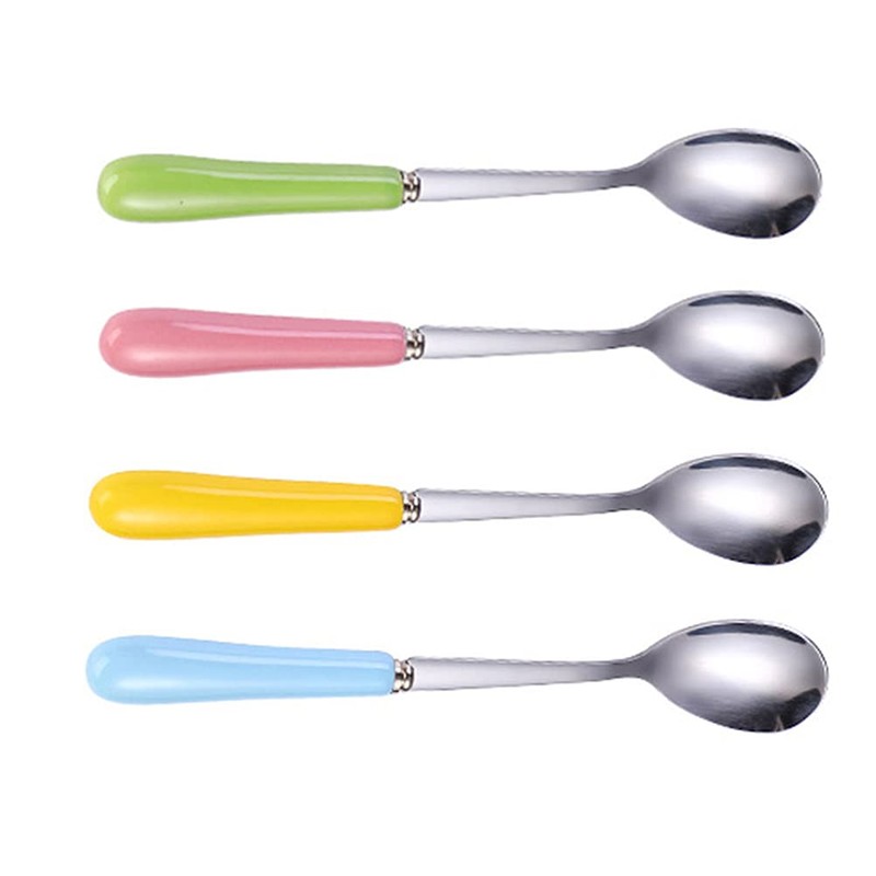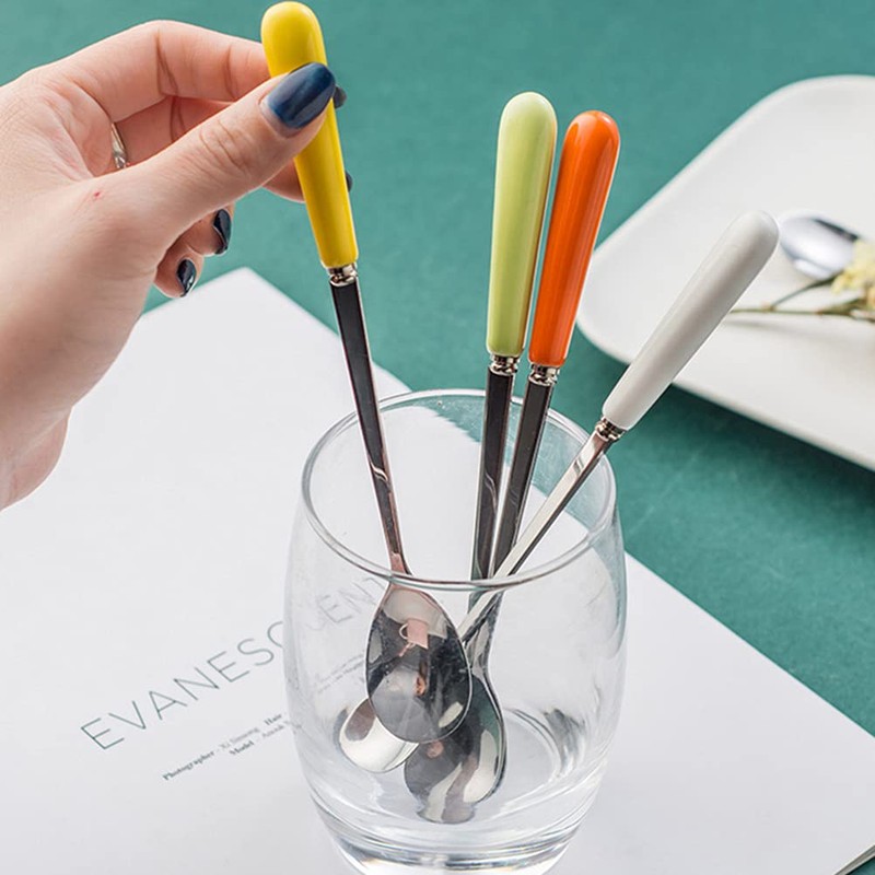 HEMOTON Mini Supoon 4Pcs Stainless Steel Teaspoons Stirring Spoons Ceramic Handle Coffee Spoons Mini Spoon