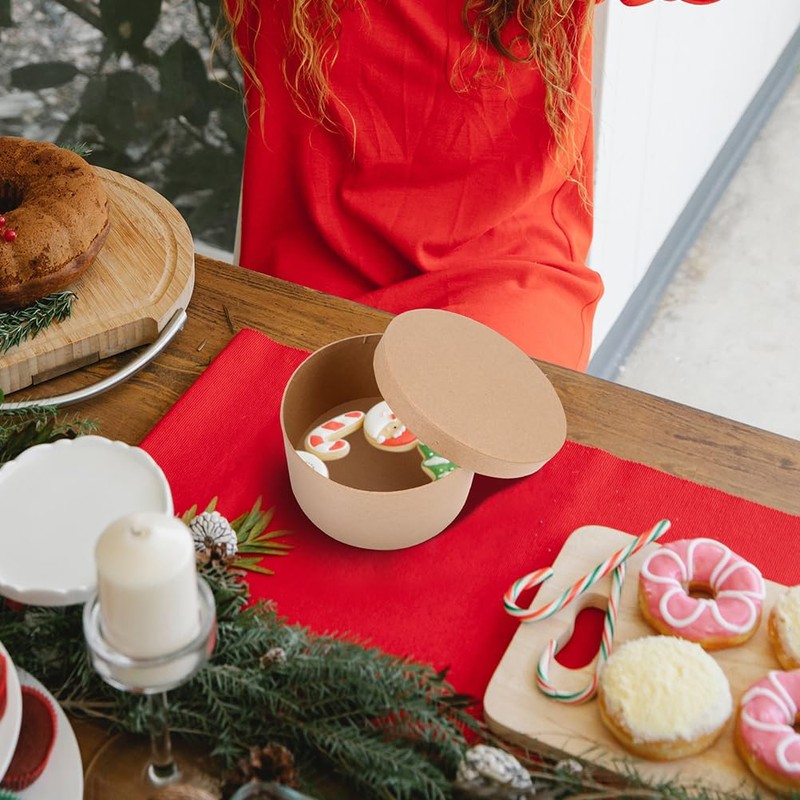 Hemoton Round Kraft Paper Mache Box, Crafts Kraft Paper Containers with Lids Boxes for Wedding Birthday Jewelry DIY 12.5x6cm/4.9x2.36