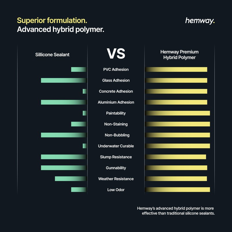 - ADVANCED HYBRID POLYMER: This sealant combines the flexibility of silicone, paintability of acrylic caulk & high grab strength of adhesives; it can be applied underwater without releasing plasticisers.