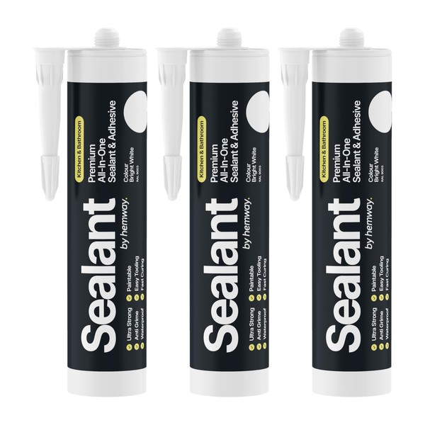 Hemway 300 ml Bright White Hybrid Polymer Sealant | Odorless & Sanitary Adhesive | Waterproof & Suitable for Use in Kitchen, Bathroom & Around Bath, Shower & Toilet | Easy to Use - 3 Pack