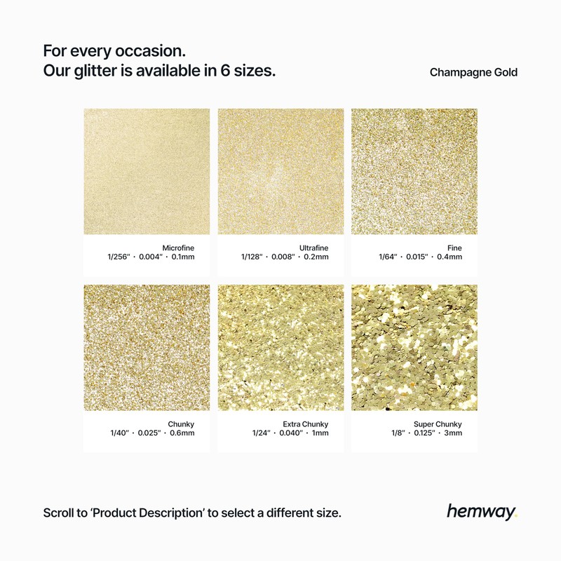 Hemway Ultra Sparkle Glitter Champagne 100g / 0.35oz Multi-Purpose Epoxy Resin Arts & Crafts Cosmetic Safe Body Hair Face Nail Weddings Art Beauty Tumblers Flowers Powder Dust Premium