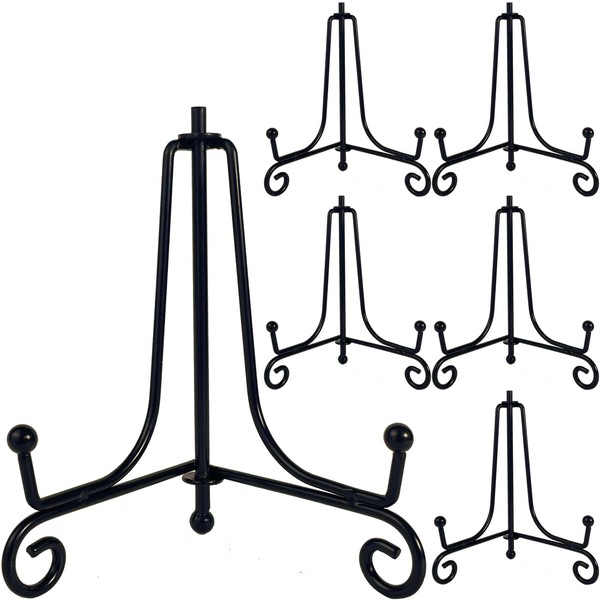 HENABLE 6PCS Premium Black Iron Plate Stands for Display 4 Inch, Decorative Solid Metal Plate Holders for Displaying, Mini Easel, Frame, Book, Card, Plaque, Bowl, Picture Stands for Display