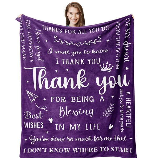 Henazin Thank You Gifts For Women/Men, Purple Gift Blanket 60"X50", Employee Appreciation Gifts, Farewell Gifts For Coworkers/Friends, Inspirational Gifts For Women, Christmas Birthday Gifts For Women
