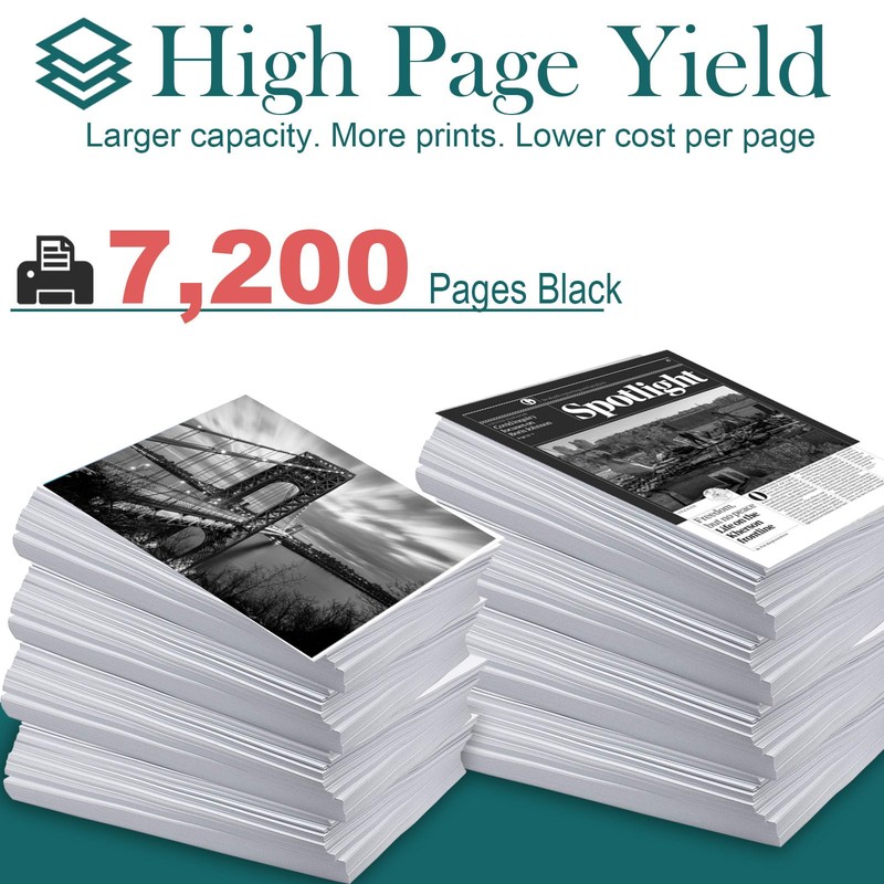 • High Page Yield: 7200 pages per Black Printer Cartridge ( A4 with 5% coverage, ISO/IEC 19752)