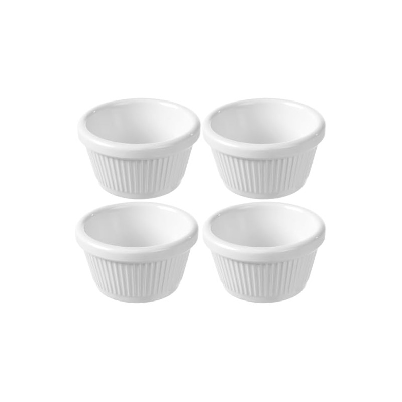 HENDI Auflaufförmchen, Bruchfest, Hygienisch, Temperaturbeständig von -20° bis 70°C, nicht Mikrowellengeeignet, Souffle, Creme Brulee, Förmchen, Melamin, 50ml, ø70x(H)35mm, 4 stück, Geriffelt, Weiß