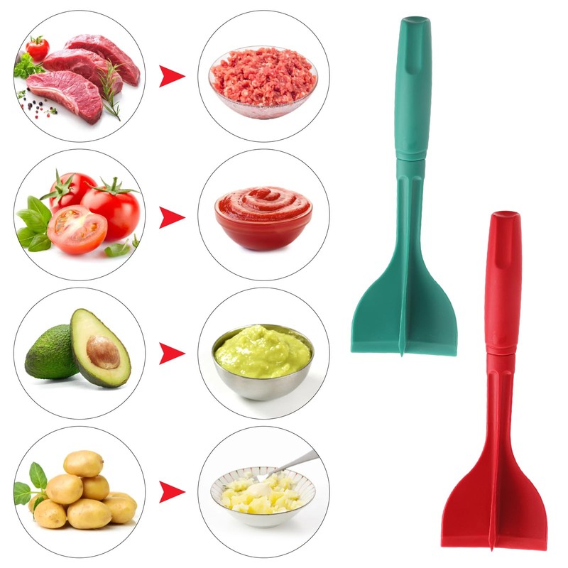 - Widely used: the ground meat chopper Any Ground Meat A Delight To Cook. Our kitchen tool for meat presses is versatile, masher can not only crush different types of meat for quick cooking, also very good for mashing other foods such as fruit, gelatin, vegetables, etc