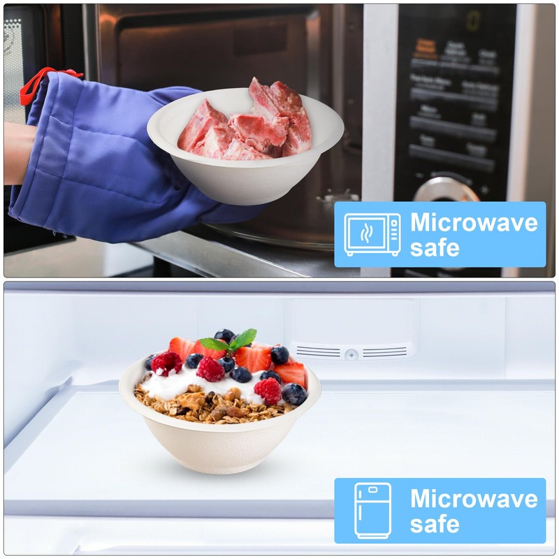 - Robust disposable bowls: the sugar cane bowls are stronger, waterproof and oil resistant. It is more stable than ordinary paper plates and is therefore also suitable for several dishes.