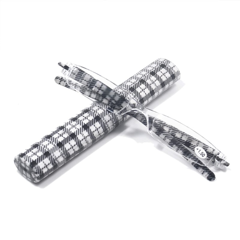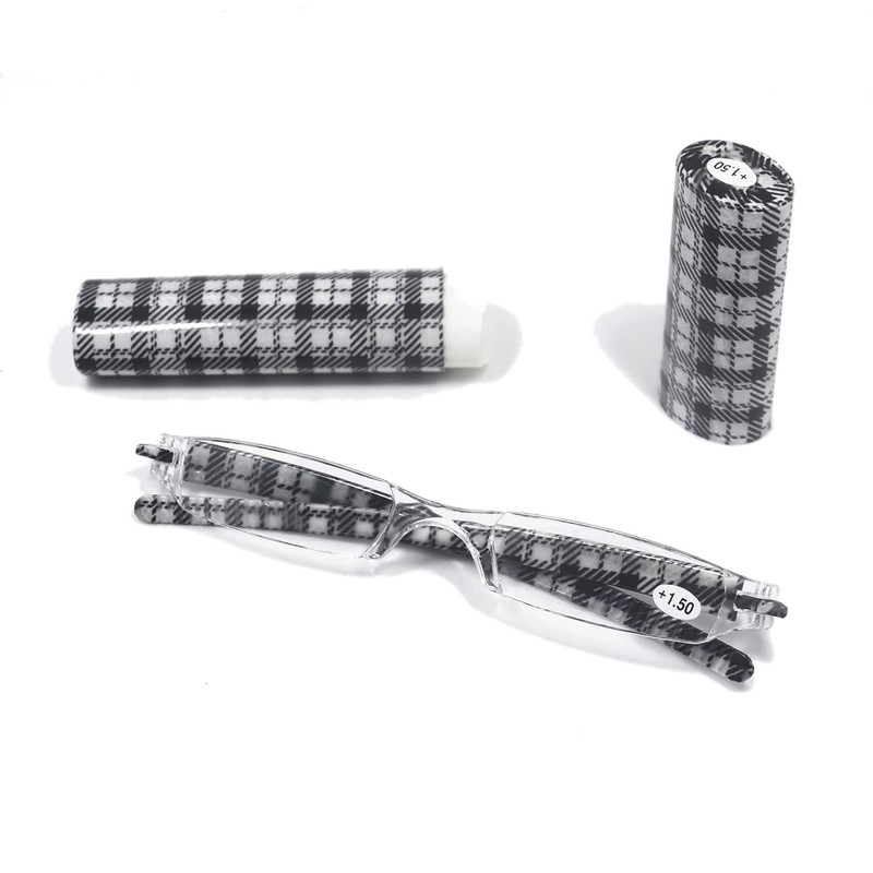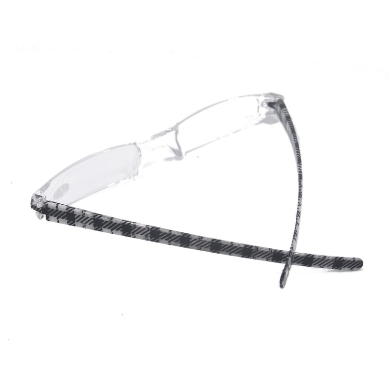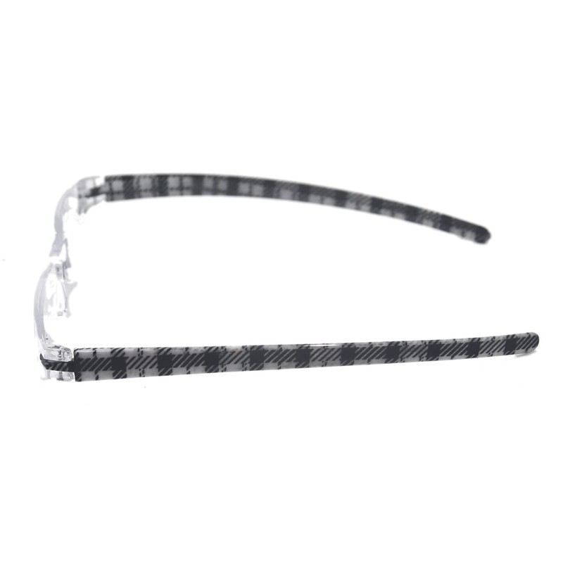 [Henghao] 携帯用 超軽量リムレス 老眼鏡 8色選択可能 シニアグラス おしゃれ リーディンググラス 専用ケース付 H6035 (ブラック チェック柄, 2.50)