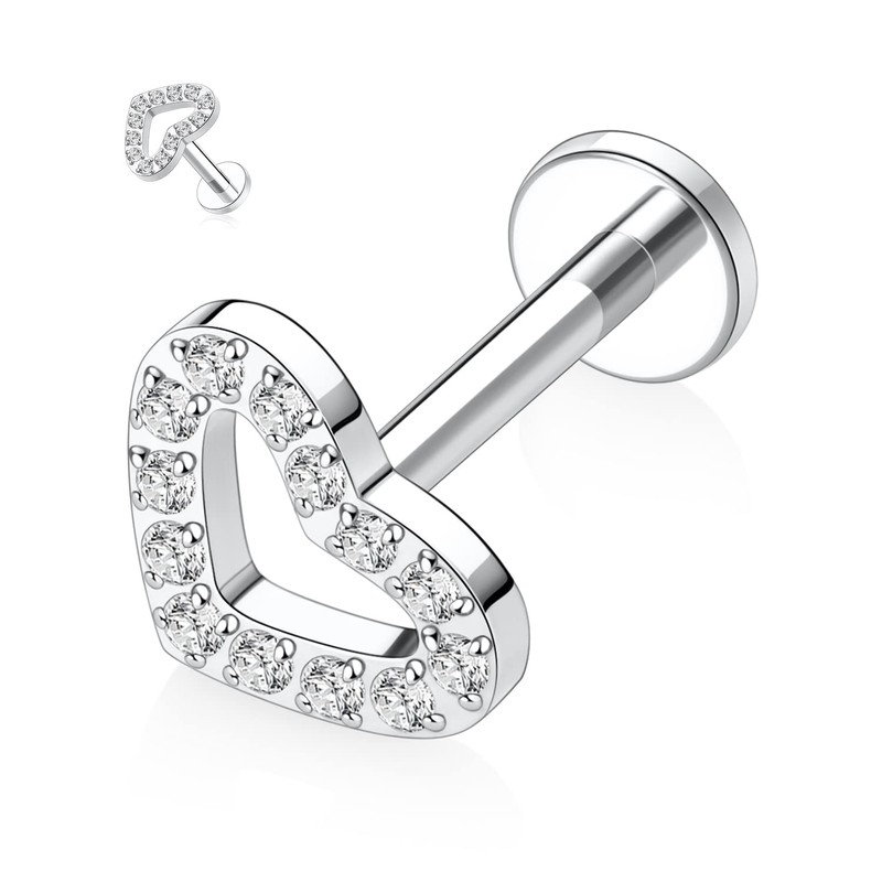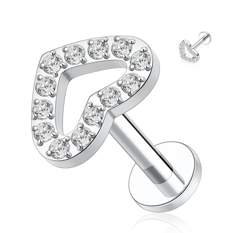 - ✿Gauge & Color:16G(1.2mm); Barbell Length: 5/16"(8mm); Color:Silver.Heart shape paved CZ. Perfect Size For Women And Mens As Daily Piercings.The lip stud is a ideal gift for yourself, girlfriends, girlfriends and mothers