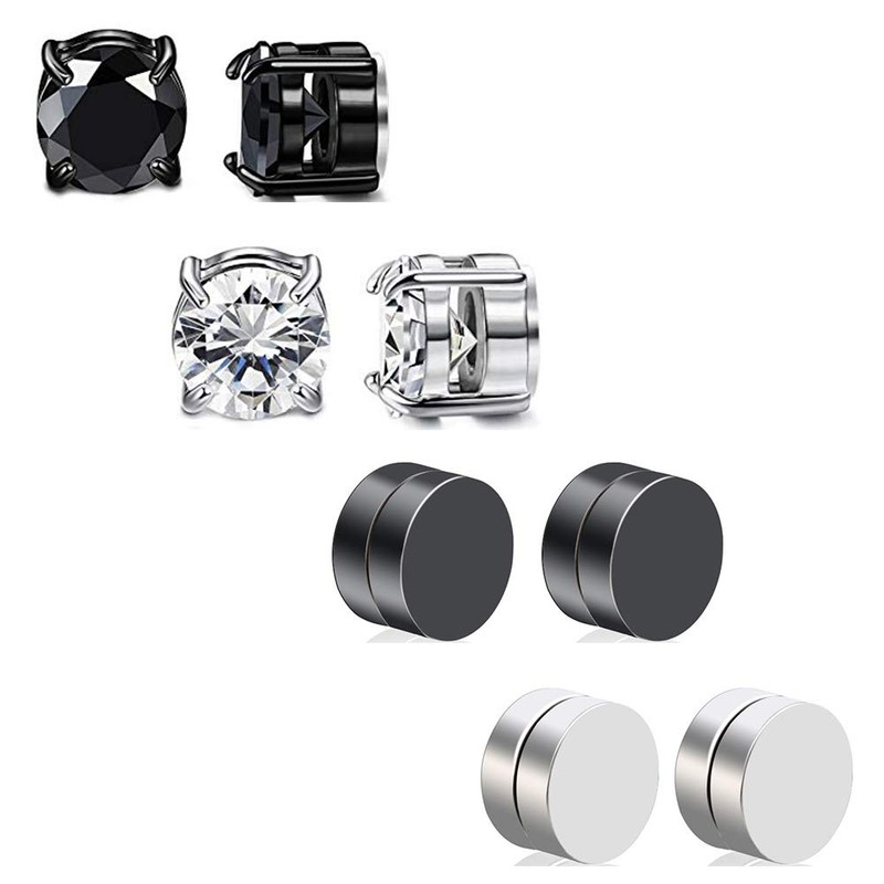 HENGYID 4 Pairs Stainless Steel Magnetic Stud Earrings for Men Women CZ Magnet Non Pierced Clip On Earrings Set 6MM