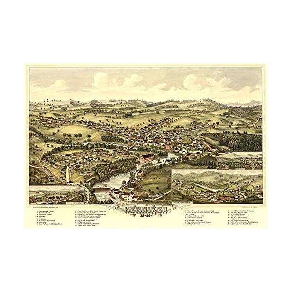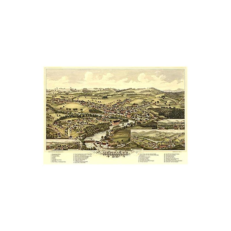Henniker, New Hampshire - 1889 - Aerial Birds Eye View Map Poster