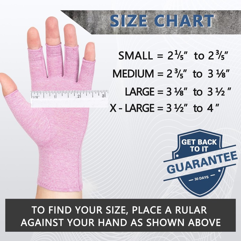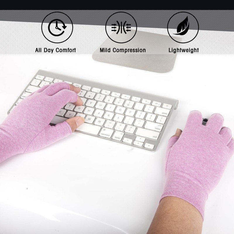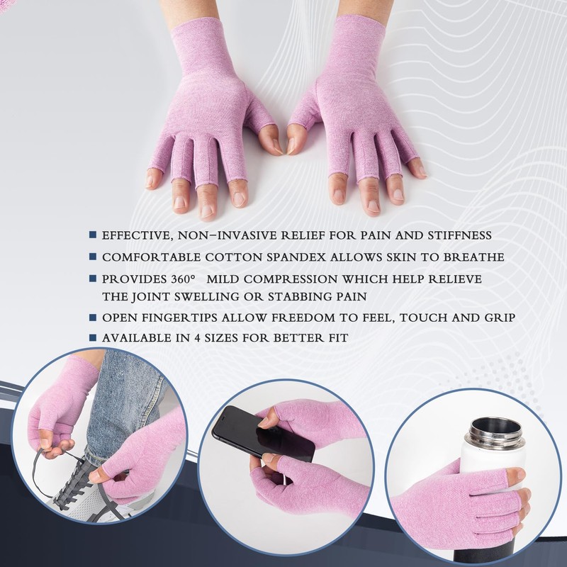 The soft compression gloves soothe sore, aching tendons, muscles and joints to effectively relieve arthritis pain by reducing stress on pressure points in the fingers, hands and wrists.